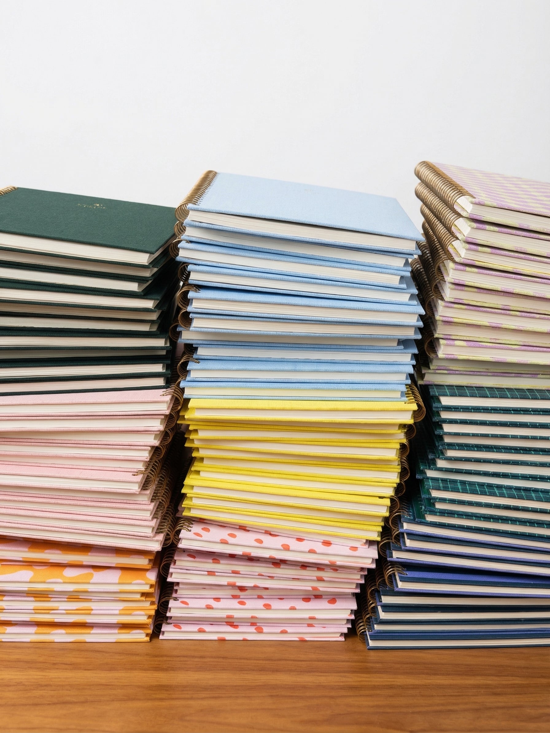 Le carnet spirales Casseau est un compagnon d'écriture raffiné arborant un motif quadrillé vert sarcelle profond qui évoque la précision tranquille des textiles tissés à la main. Des lignes fines et irrégulières créent un rythme géométrique subtil sur la couverture en toile de lin, rehaussé par un logo doré élégant et une reliure spirale Wire-O assortie.